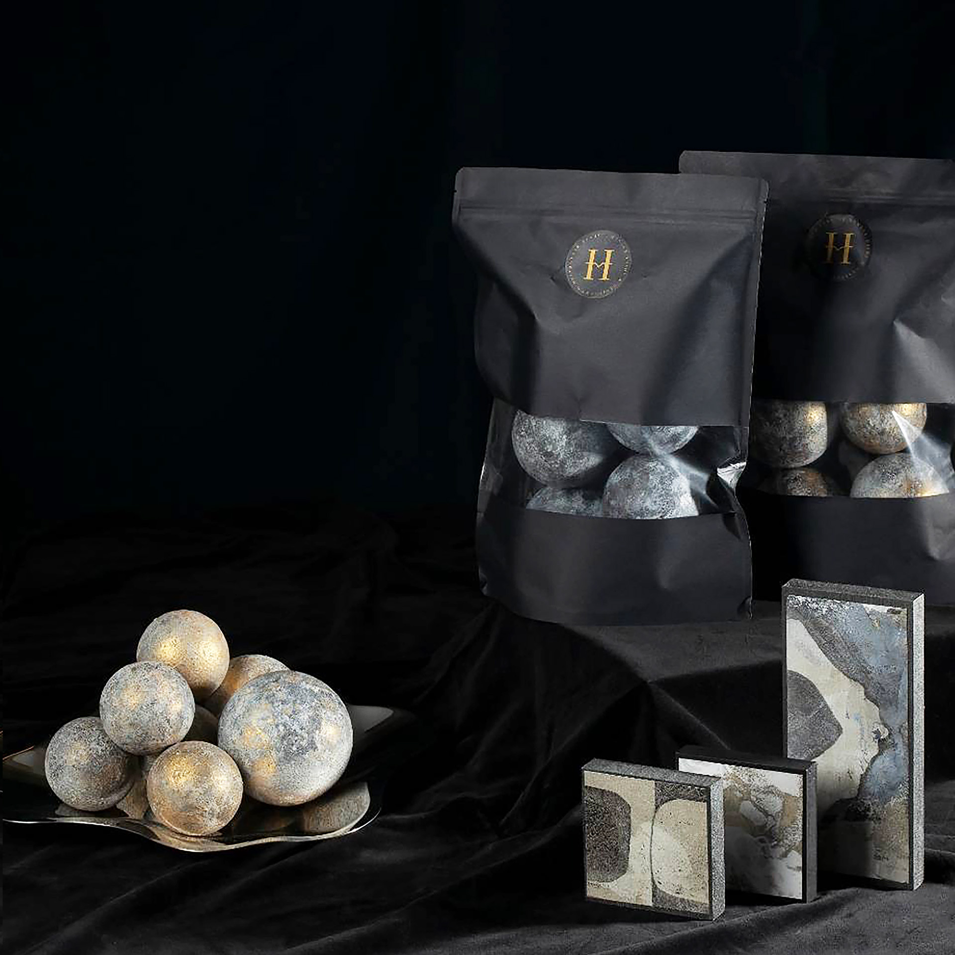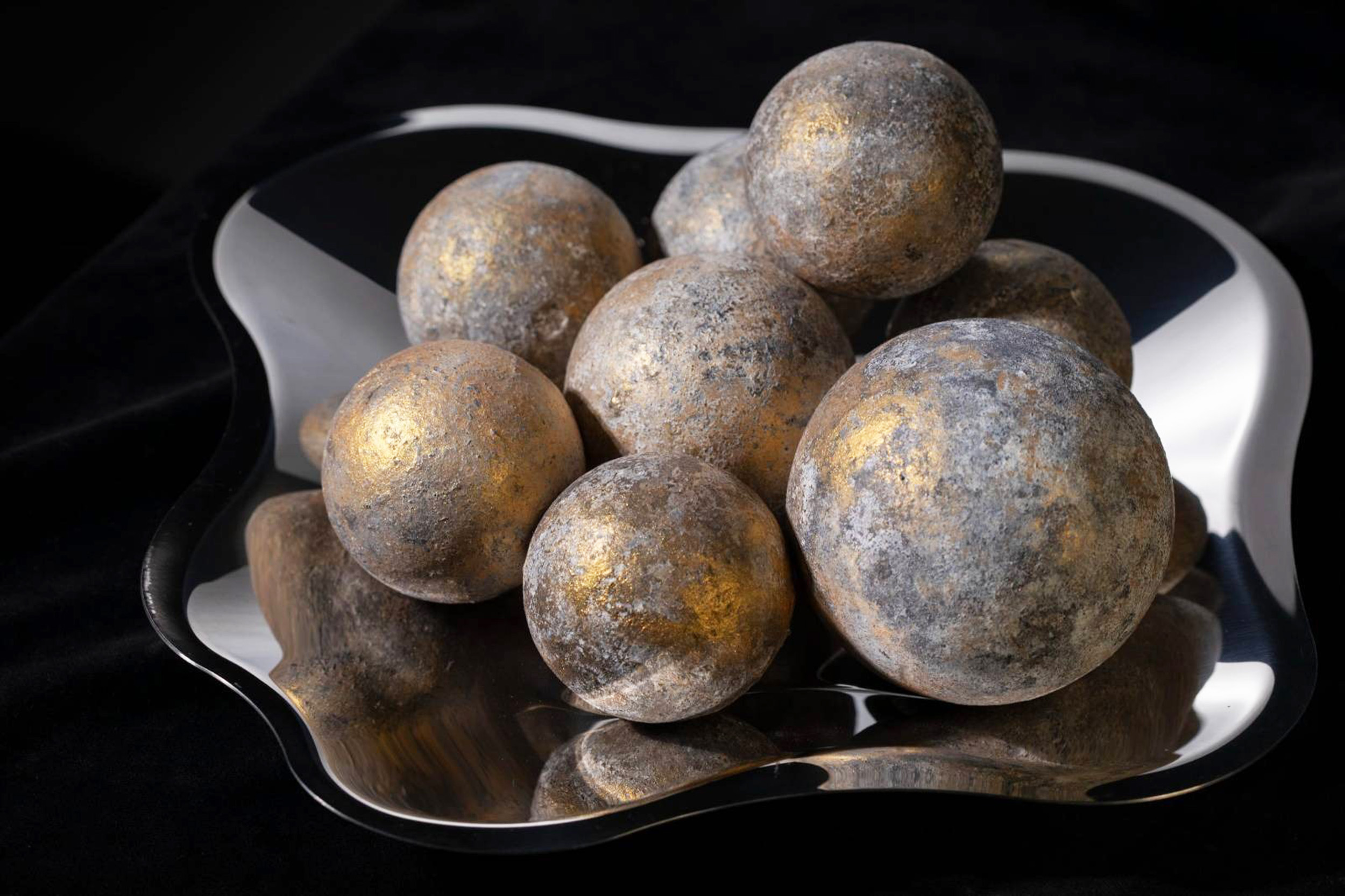 Käsintehdyt kultaiset ja hopeiset designpallot ovat saatavilla jälleen joulusesongissa 2023. Tilaukset sähköpostitse heli@helimanner.fi